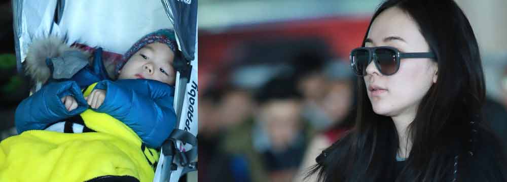 中工网讯 2016年2月3日,霍思燕推嗯哼现身北京机场,嗯哼躺推车中做安静美男子。