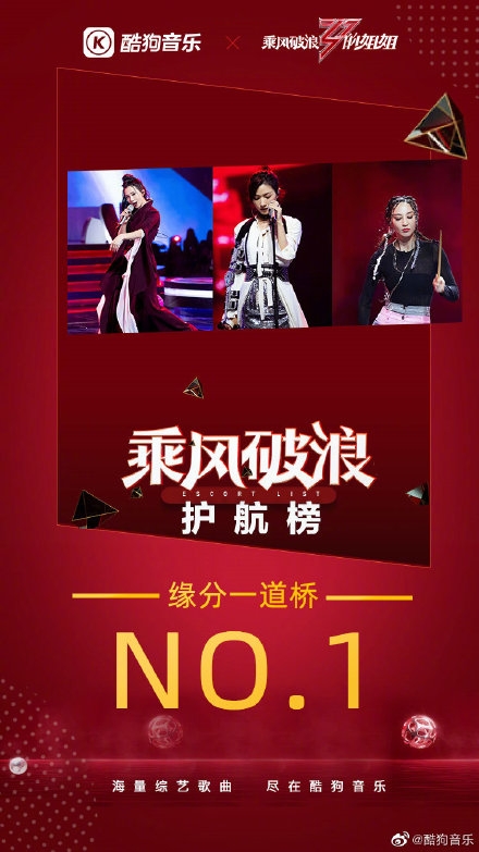 《乘风破浪的姐姐》舞台开启以来,姐姐们以精彩的表演和不断的突破,给观众们带来视听享受和心灵的震撼,同时还带来人生的启迪。就像上轮离开的一位姐姐说的:“离开了舞台,今后也要继续乘风破浪。”如果你有喜欢的小姐姐,记得前往酷狗音乐【乘风破浪护航榜】为她助力。每一期榜首位将解锁"头图推荐安利*7天""独家推荐综艺热歌"官方歌单封面*7天"认证官博""独家定制宣传海报"等专属宣推福利。每期节目结束后,酷狗音乐都将及时上线节目正版音源,和姐姐们一起在音乐中汲取勇气和力量吧。