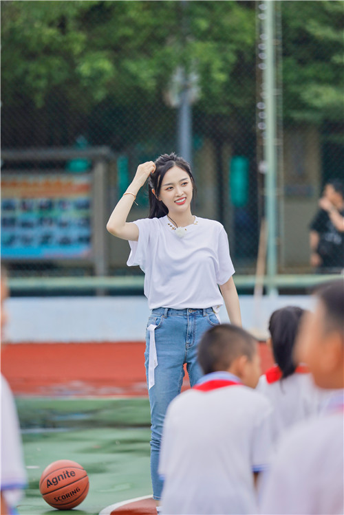 除了音乐课,“西岛浪五花”和尹正还带着孩子们上了一节不一样的体育课。成员们分开行动,分为篮球组和跳绳组。面对好动的小学生,黄新淳依旧无可奈何:“小朋友这个注意力真的很难集中。”而师姐吴宣仪一声大喊“小朋友们,看着我”,瞬间把小学生“收伏”,阿云嘎和黄新淳不由地竖起大拇指表示厉害。