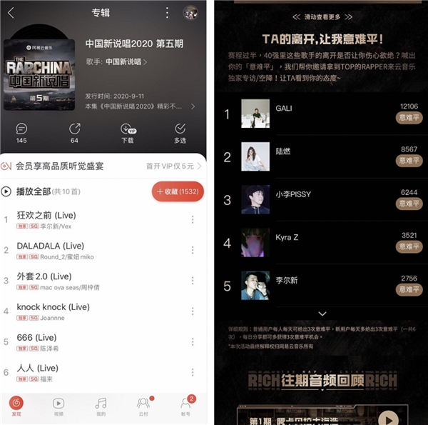 随着《中国新说唱2020》赛程不断推进,越来越多人气选手止步中国新说唱2020。网易云音乐成为这些优秀选手们继续获得关注的主要阵地。无论是他们在新说唱呈现的hit song,还是他们发布的新歌、以及即将开启的演出计划,在云村都获得了空前关注。许多云村村民表示要将选手复活回去,或者期待他们下一年的参与,很多人更期待他们的演出现场,纷纷询问巡演计划。可以说,网易云音乐已经成为《中国新说唱2020》最强第二现场。