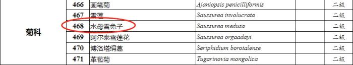 记者注意到,在今年7月9日国家林草局、农业农村部发布的《国家重点保护野生植物名录》征求意见稿中,属菊科的“水母雪兔子”已经被列为国家二级保护植物。