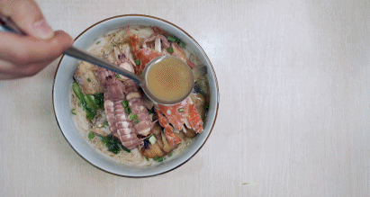 所以,她做的海鲜面也很有讲究:煮的时候要先鱼,后放皮皮虾、梭子蟹,然后再放主食,最大程度地释放每一种食材的美味。