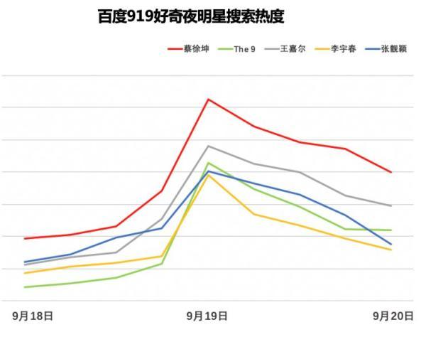 9月19日,百度App联手浙江卫视共同打造了国内首台好奇主题晚会《百度好奇夜》。蔡徐坤、THE9、谢霆锋、张靓颖、李宇春、李健、王嘉尔等众多一线明星登场,超豪华明星阵容加上充满黑科技的舞台效果,让众多明星粉丝大呼:过年了!
