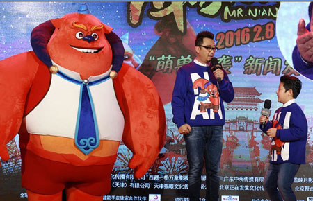 重庆商报讯 由宁浩出品、张扬导演的动画电影《年兽大作战》昨日曝光了一支制作特辑,特辑中雷佳音、周冬雨、陈赫、陶虹、郭涛、郭子睿、刘仪伟、沈腾、张一白、王迅、郝云、谢娜、熊乃瑾等主演脑洞大开,纷纷夸张演绎。虽然对动画表演夸张化有所不习惯,但周冬雨表示:“会从角色的动作表情来研究沙果这个角色的心理”;陈赫更是在角色设计中融入陈氏经典笑声,令人捧腹。对于此次动画电影采用真人演绎的形式进行创作,出品人宁浩表示:“如果能创作出‘年’这个形象得到大家认可,那就是个有价值的事情”。据悉,电影《年兽大作战》将于2016年2月8日上映。