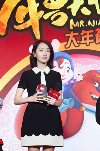 搜狐娱乐讯 2月1日,由宁浩出品、张扬导演的合家欢动画电影《年兽大作战》日前在北京举办“开年大红”首映发布会。影片主创携配音主演周冬雨、陈赫、雷佳音、沈腾等亮相助阵。当天,周冬雨身穿黑色高领小礼服出席,尽显俏皮气质,第二次尝试动画配音的她分享了自己的感受“沙果是小女孩儿,配音就要很夸张,适度的夸张”。在现场,她不仅带来与观众粉丝积极互动,还带来“小猪歌”的魔性舞蹈,嗨翻全场。