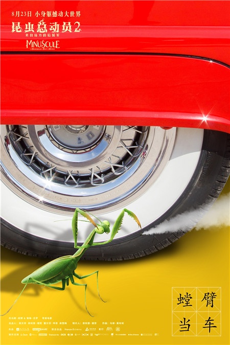 “梦之队”的另一成员蛛小萌以“网罗天下”担起了队伍中的智慧角色,纤细的蛛丝交错成网,钩扯住倾斜的地球仪,配上成语解释,一语双关,趣味十足;行事蠢萌的螳螂面对现代的汽车,竟用前肢戳破了橡胶轮胎,演绎现代版“螳臂当车”,作为影片自带笑点的反派,这一成语放在螳螂的身上增添了戏剧效果。本次发布的创意海报,将来自法国的独特浪漫与中国的深厚文化底蕴进行火花碰撞,在趣味传播的同时增强观众对影片中角色的记忆点。