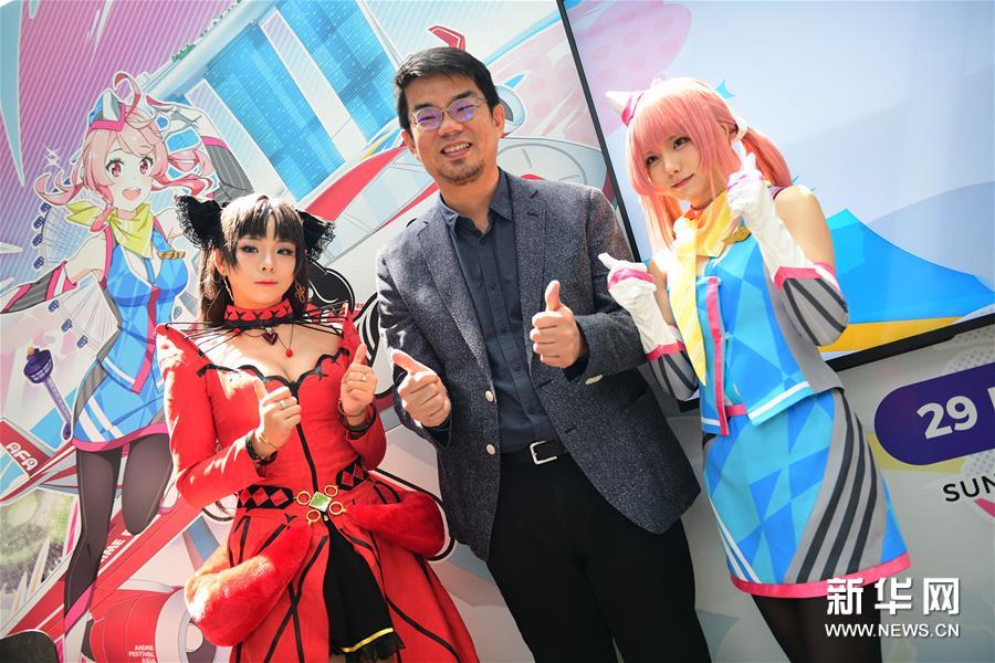 10月30日,新加坡角色扮演者Rithe(左)与日本角色扮演者Enako(右)出席在新加坡樟宜机场的“星耀樟宜”举行的C3亚洲动漫节记者会。新华社发 (邓智炜摄)