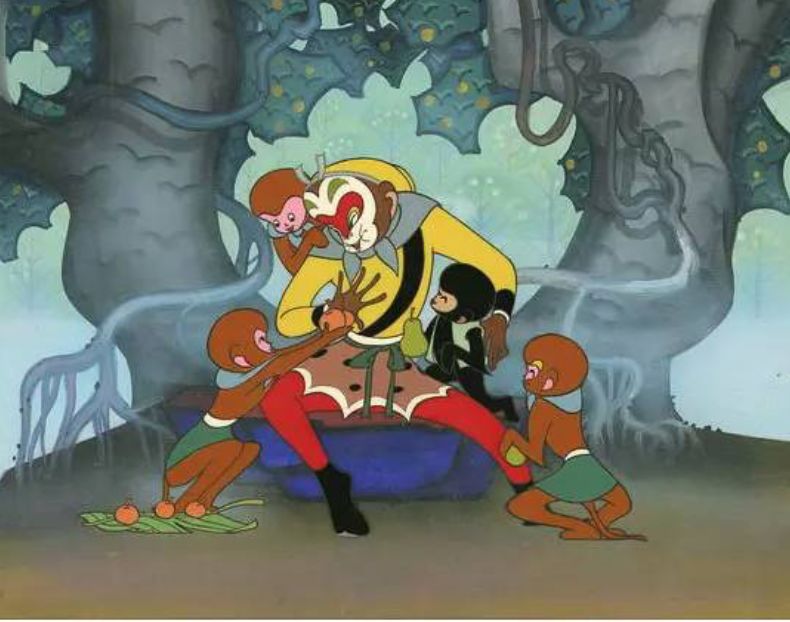 《大闹天宫》是上海美术电影制片厂于1961年至1964年制作的一部彩色动画长片,前后历时4年创作。它综合了古代绘画、庙堂艺术、民间年画的特色,又融入了中国传统戏曲精湛的表演艺术技巧,充分地表达了中国的传统艺术风格。