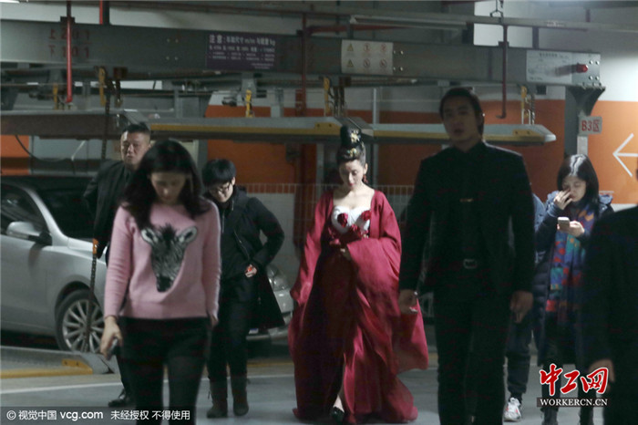 近日,张天爱上海捞金再扮“太子妃” ,头插玫瑰妆容艳丽不输武媚娘。