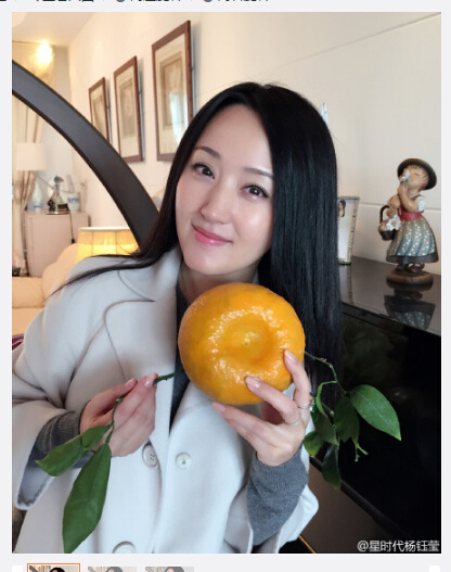 杨钰莹晒拿橘子的美照 网友叹:不老女神(图)