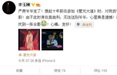 李玉刚哀悼阎肃去世:谆谆教诲还在眼前