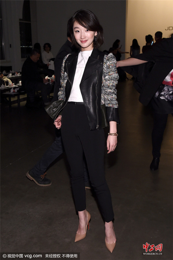 周冬雨亮相上海时装周 曳地长裙惊艳上海滩(组图)