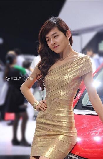有几个展台的车模格外引人注目,爆乳、低胸、走光露底、露胸贴内衣比比皆是,有一名车模穿着性感,甚至豪放露美臀,疑似下体真空未穿内裤搏出位。