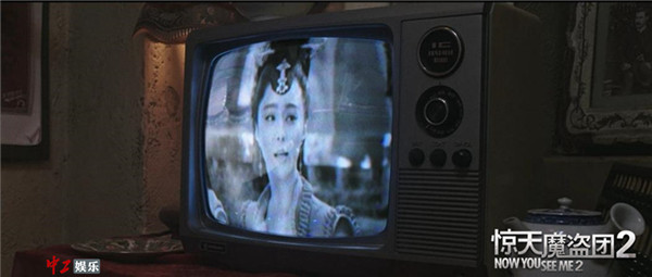 影片中,四骑士被莫名骗至中国澳门,他们被胁迫偷芯片之后,来到一家神秘的魔术道具店寻找道具。这家店的老板正是由周杰伦扮演,扮演周杰伦奶奶的老演员周采芹在影片中的亮相也充满悬念。不过,周采芹的角色还为影片提供了又一个惊喜,她在魔术店中看电视时,屏幕中出现的竟然是古装造型的范冰冰,此前曾热播的《武媚娘传奇》就这样在《惊天魔盗团2》中打了酱油,让提前毫不知情的观众们在看到这里时颇感意外。