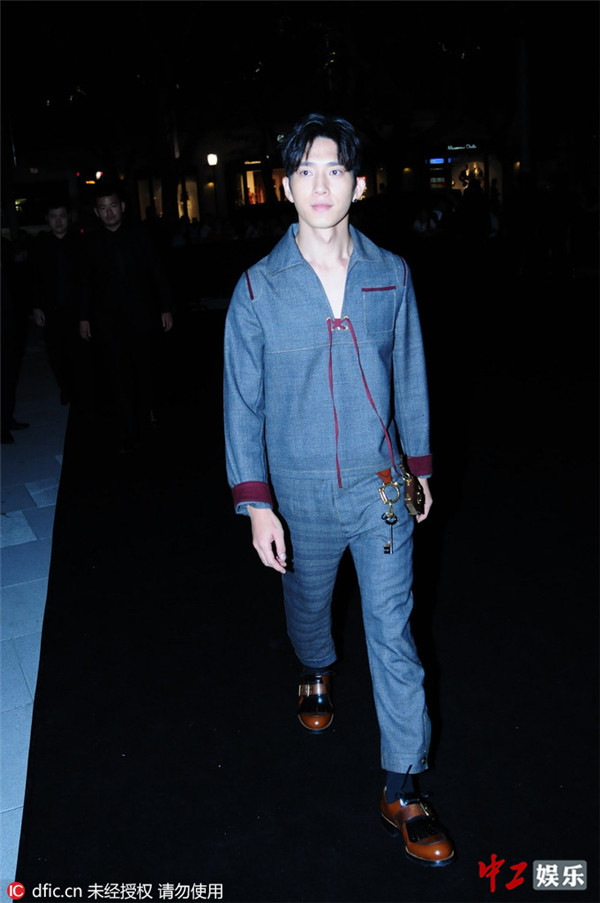 井柏然一袭蓝色现身沪上捞金 获保镖护驾引粉丝围观
