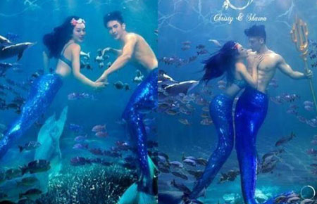 钟丽缇与张伦硕誓言将婚宴打造成别种风格,而今日他们向各方好友发出电子请帖,一打开便能看小两口化身人鱼夫妻于海中徜徉。