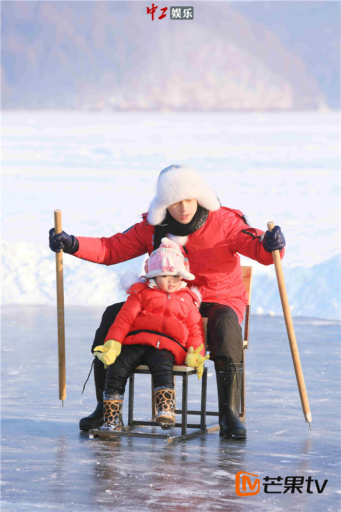 萌娃奶爸将在桃源湖上完成滑冰项目,六组家庭将根据抽冰签的形式,分成两组,分别进行雪地滑冰大作战及人体保龄球。在结冰数尺的湖面上,阿拉蕾的行动略为艰难,集合前,所有萌娃都一溜烟的冲向村长,唯有阿拉蕾站在原地一动不动,无助的向“葱长”求救。看到此景,张伦硕逗趣的称阿拉蕾为“冰封公主”。
