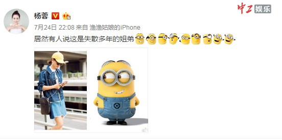 会玩!杨蓉发图调侃自己和小黄人是“姐弟”