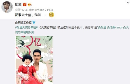 《天使的幸福》点击达3亿 明道回应破十亿就公布恋情?