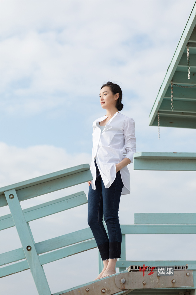 吴越海边小憩 短发白衬衫简单纯粹