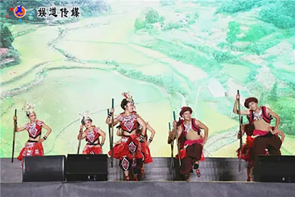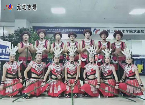 我还是在前不久仔细观看了夏冰发来的新作体育舞蹈视频《阿依踩》,“阿依”苗族对女孩昵称“美丽”的意思,“踩”又是苗族盛大的节日《踩花山》。《踩花山》也叫《跳花》。《阿依踩》取材于苗族非物质文化遗产《苗山打闹》。作品音乐中除了苗山打闹的原生态为创作动机,还借鉴了现在享誉全国的苗族民歌《娇阿依》音乐特色。《阿依踩》以“踩”为主要形体动作,并由作曲家廖元德老师创作。听夏冰说廖元德老师是当地非常有影响的音乐家,他创作的苗族山民歌非常接地气,很原汁原味,特别突出苗族人民的生活气质,淳朴,深情,苍劲,热情。听他的音乐就象是进到了原始苗塞喝了一碗清甜的苗族米酒,亲切甜美。。。。。。看来夏冰在体育舞蹈题目的选择上使当地观者一目了然、易懂又较熟悉,《阿依踩》在结构上沿用了聚散、单、双、三人舞及高低上下的托举。整个舞蹈结构开场是以集体群跳的劳动欢歌为主要形式,在欢歌中以群体的踩为主要形式展开。在推向高潮中进行两队对垒,你追我赶,将舞蹈开场推向高潮。中间舞段以田间小息,男女逗乐抒情,使歌舞转入深情幽默的风格。