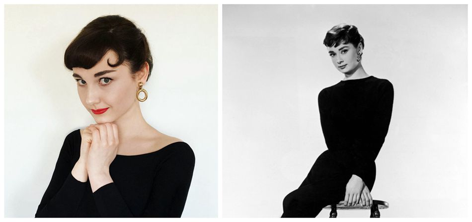 安娜丽丝模仿赫本在电影《龙凤配》中的造型。(网页截图)