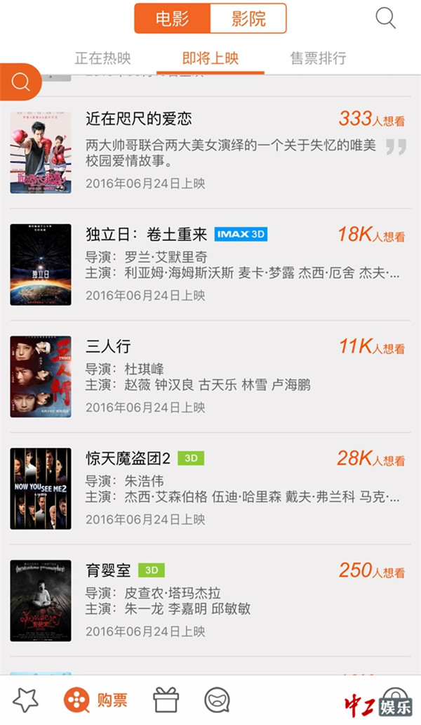 看似偶然的数据表现背后,三部影片的票房吸引力已经可以一窥端倪。目前在影迷心中成观影首选的《惊天魔盗团2》,在六月的档期内明显有着不可替代的优势:首先,相比《独立日2》这样时隔二十年归来的续集,《惊天魔盗团2》的上一部在三年前上映,观众对原作的记忆犹在,好感度必然导致对续集的期待;其次,在六月甚至七月初要上映的好莱坞大片中,《惊天魔盗团2》是唯一一部包含曲折情节的走心大片,中间反转再反转的剧情堪称“烧脑”,或许也正是因为这样,在美国烂番茄网站上,《惊天魔盗团2》的烂番茄指数超过同样即将上映的《魔兽》和《忍者神龟2》;最后,在华语地区,周杰伦的超强号召力自然不用多说,此前由周杰伦创作、演唱的全球主题曲MV发布后,已经在各大社交媒体上形成一轮刷屏潮,加上周董自身参演该片,影迷和粉丝们都已经表示“624影院约起来”。