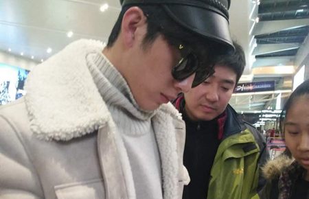 2016年2月17日,上海,井柏然酷装现身机场为粉丝签名秀亲民……