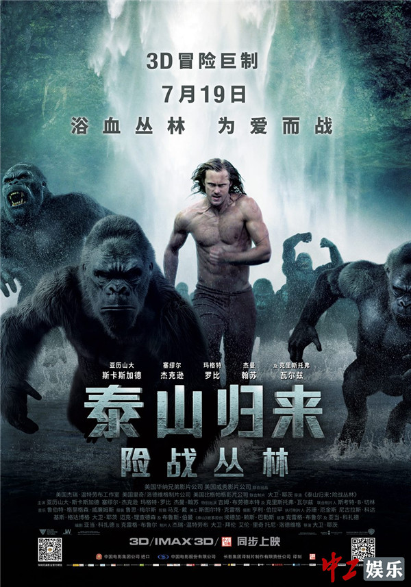 中工娱乐6月13日报道 华纳兄弟影业今日正式宣布,由其与威秀影业联合出品的3D冒险巨制《泰山归来:险战丛林》正式定档7月19日,将以3D、IMAX 3D和中国巨幕的格式在中国内地上映。该片主创大胆创新,不再重述泰山经典,而是为观众讲述了泰山移居城市后,为了守护家园,浴血丛林,为爱而战。