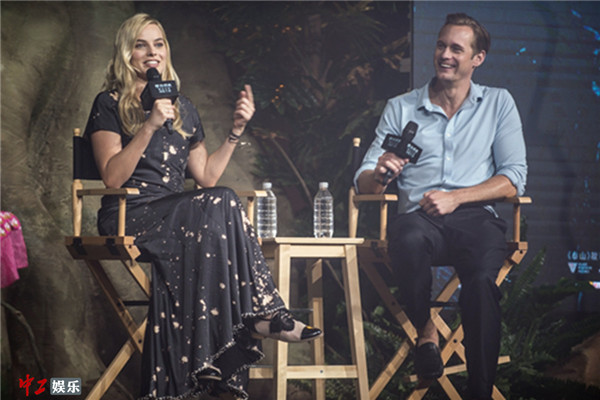 中工娱乐7月9日报道 7月8日,由华纳兄弟影业和威秀影业联合出品的真人3D动作冒险巨制《泰山归来:险战丛林》新闻发布会在北京举行。当天,影片主演亚历山大·斯卡斯加德、玛格特·罗比出席,首次来到北京的两人不仅大谈自己在影片中的角色和戏份,更在现场互赞对方,分享中国行体会,银幕下再次“秀恩爱”。影片将于7月19日以3D、IMAX 3D和中国巨幕格式在内地上映。