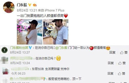 昨天,门东毅的微博又发文了,最近的明星奶爸们好像有了默契一样,在经历了晒美食厨艺诱惑粉丝之后,门东毅也晒出了自家的萌娃,配文是:一出门就要抱抱的人颜值都很高。