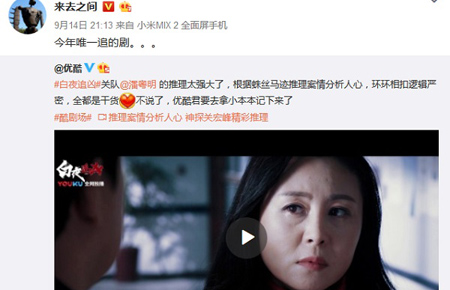 微博CEO熬夜刷《白夜追凶》 优酷总裁:叫个炒肝外卖,下饭