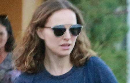 娜塔莉波特曼宽松黑tee小腹微凸显孕相 与老公紧牵爱子外出