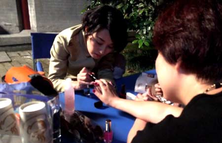 网友点赞马伊琍认真为别人修指甲、涂指甲油(图)