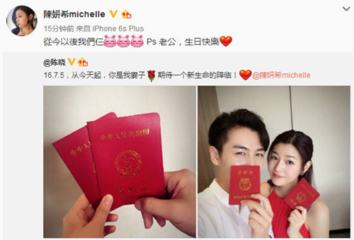 霍建华工作室官方微博发布一条消息,称“华说:希望得到大家的祝福。”并艾特了林心如。随后,林心如工作室官方微博转发微博,发表红心默认。