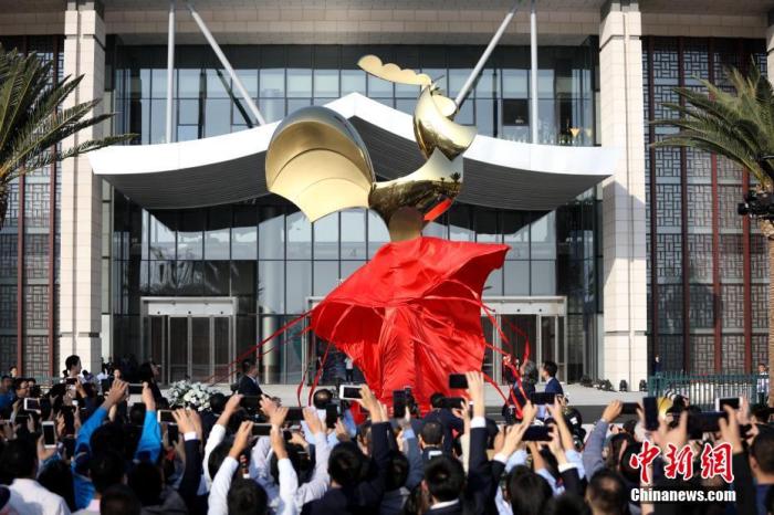 第28届中国金鸡百花电影节金鸡雕塑揭幕。中新社记者 李思源 摄