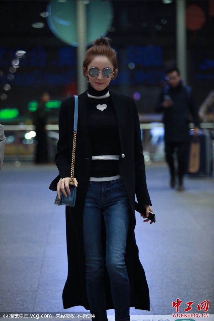 古力娜扎戴银色墨镜 头顶丸子头开心街拍(高清 )