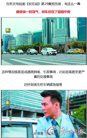 《欢乐颂》中王凯扮演的赵医生把车驶离马路中间。