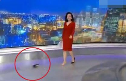 央视女主播出场时意外甩掉高跟鞋 仍淡定主持