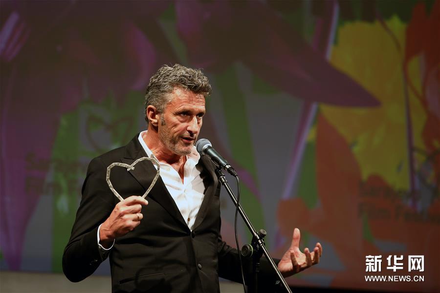 8月16日,在波黑首都萨拉热窝,波兰导演帕夫利科夫斯基在萨拉热窝电影节开幕式上发表获奖感言。 第25届萨拉热窝电影节16日开幕,来自56个国家及地区的270部影片参展,创下历史新高。本届电影节的“萨拉热窝之心荣誉奖”授予波兰导演帕夫利科夫斯基与墨西哥导演伊尼亚里图。 新华社发(內迪姆·格拉博维察摄)