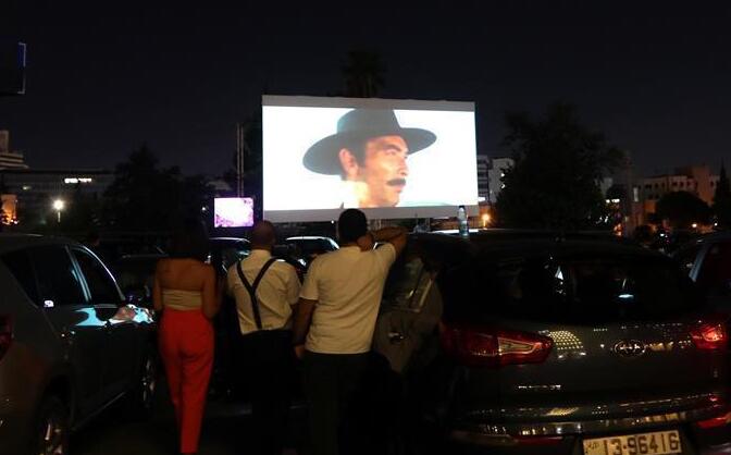 8月23日,在约旦安曼,观众在电影节设置的户外影院观影。首届安曼国际电影节23日在约旦首都安曼开幕。