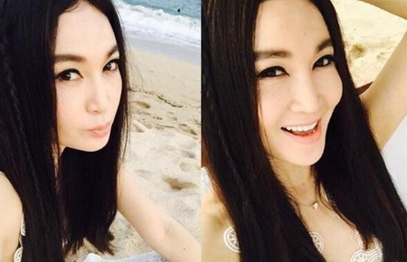 49岁温碧霞晒沙滩美照 嘟嘴甜笑脸蛋稚嫩(图)