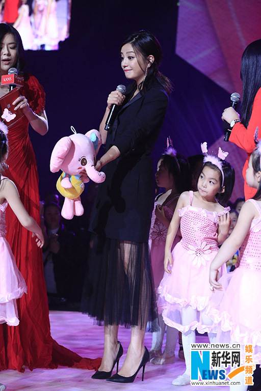 赵薇穿性感纱裙英气利落 与小朋友嬉闹萌态十足