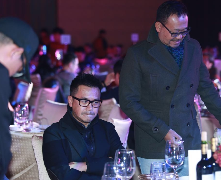 因吸毒事件匿迹演艺圈的王学兵,现身某影业公司年会。久未路面的他,脸庞圆润,略微发福,现场心情大好,拿手机不断自拍。(图文/小易)