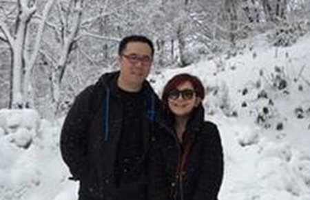 梁静茹假期滑雪心情好 与老公雪地里合影(图)