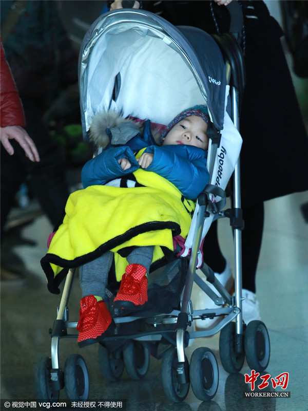 霍思燕带儿子现身机场 静美男嗯哼躺推车(高清大图)