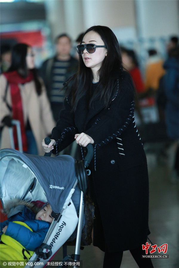 霍思燕带儿子现身机场 静美男嗯哼躺推车(高清大图)