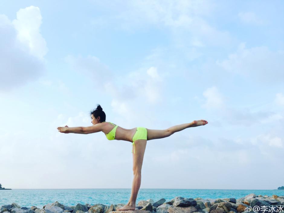 李冰冰穿比基尼海边练瑜伽 腿长肤白网友赞美哭了(组图)