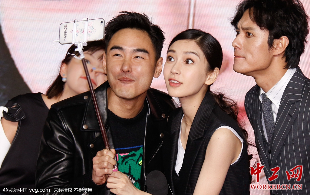 中工网讯 2016年2月14日,上海,2月14日,,电影《谋杀似水年华》发布会。导演陈果、原著蔡骏、演员阮经天、杨颖(Angelababy)、热依扎、张超出席宣传。