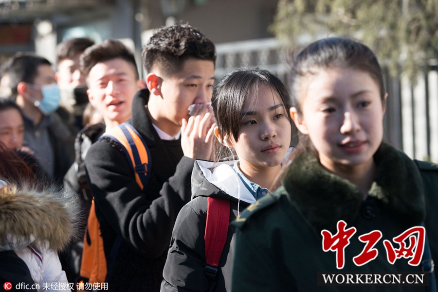 2016年2月15日,北京,中国传媒大学、中央戏剧学院、北京电影学院艺考初试拉开大幕。全国各地“女神”和小鲜肉占领三所高校。虽然京城寒风凛冽,考场外各路赶考小鲜肉黑压压一片,迅速占领校园。